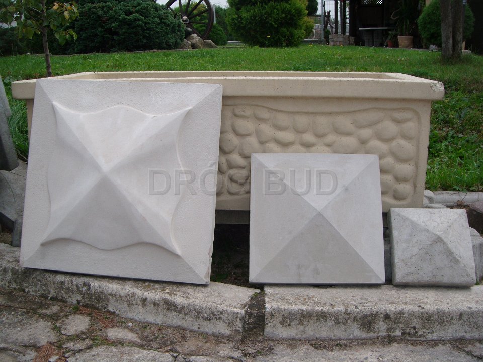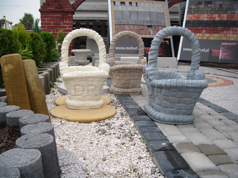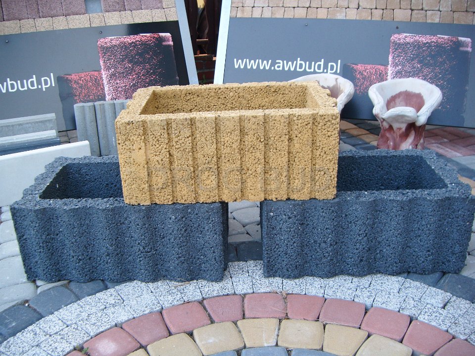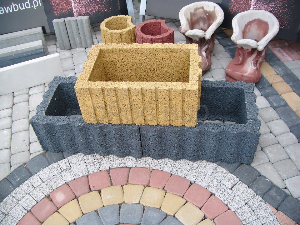 Różne rodzaju donice betonowe, płytki ozdobne, palisady.