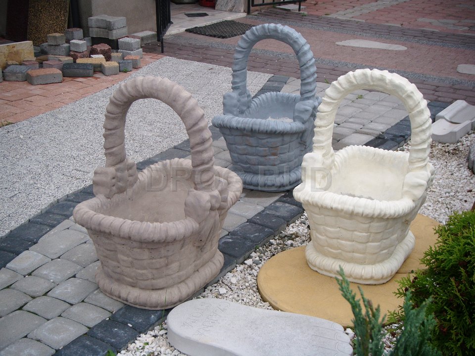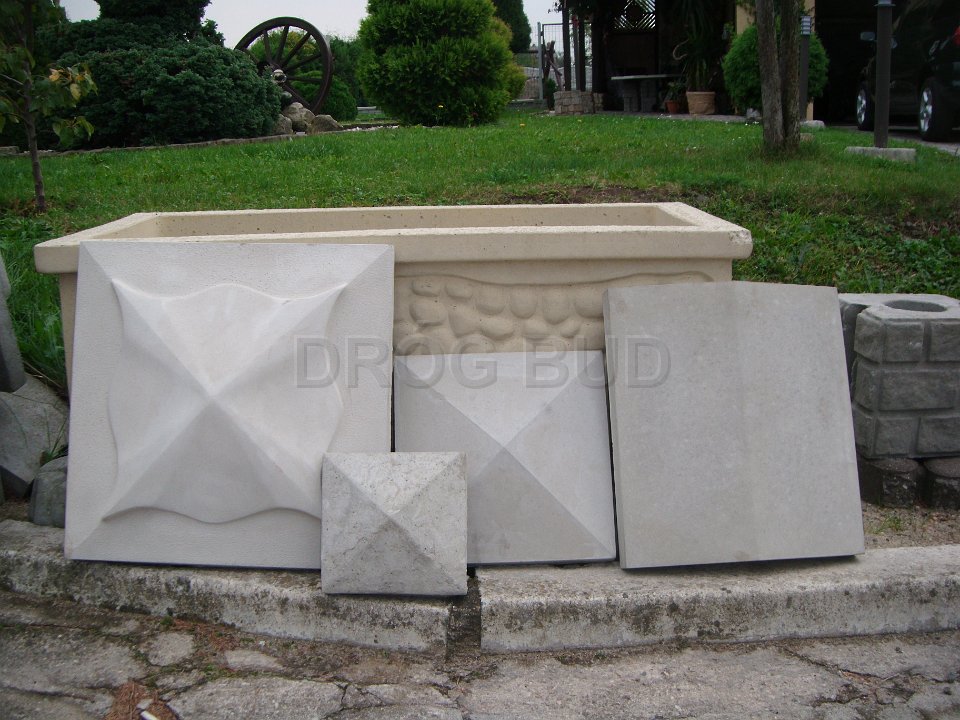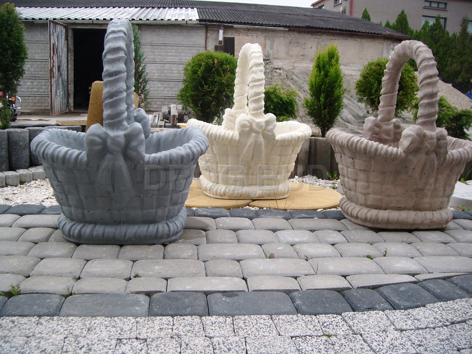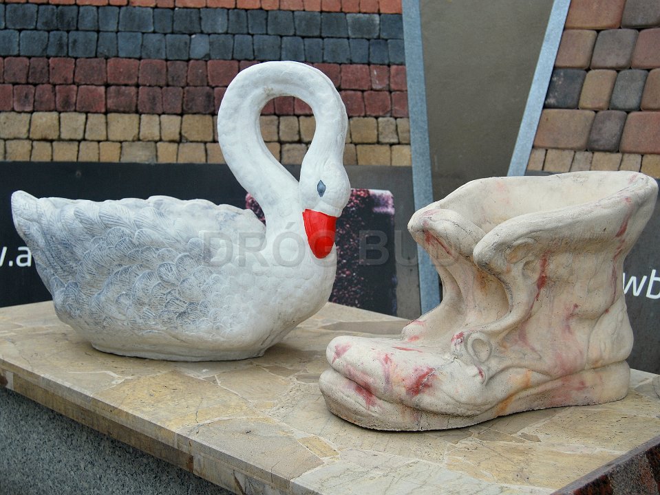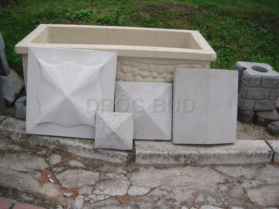 Różne rodzaju donice betonowe, płytki ozdobne, palisady.